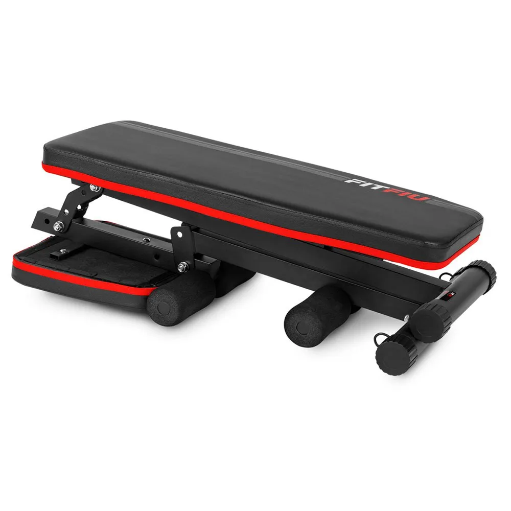 The multifunctional abdominal bench is designed with a light and strong steel structure, a wide and comfortable padded backrest and support points for feet and hands covered with high density foam. It can support up to 100kg maximum user weight.