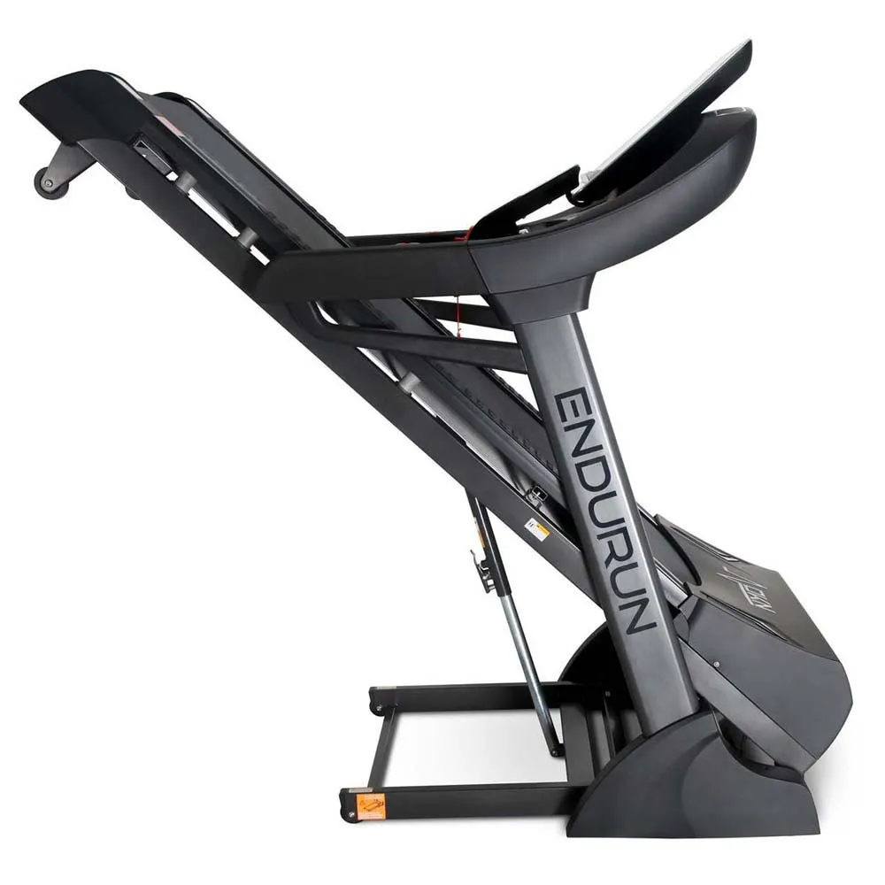 – The EnduRun folding treadmill offers a large 2.5 HP AC continuous duty motor and a high top speed of 22kph (13.7mph) making it suitable for the fastest sprints.