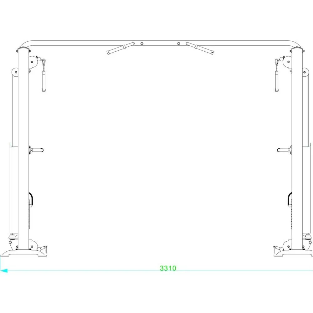 – Dimensions: 331 x 85 x 223 cm (LxWxH). 2 x 82 kg (180 lbs) precisely milled steel plates with nylon bushing.
