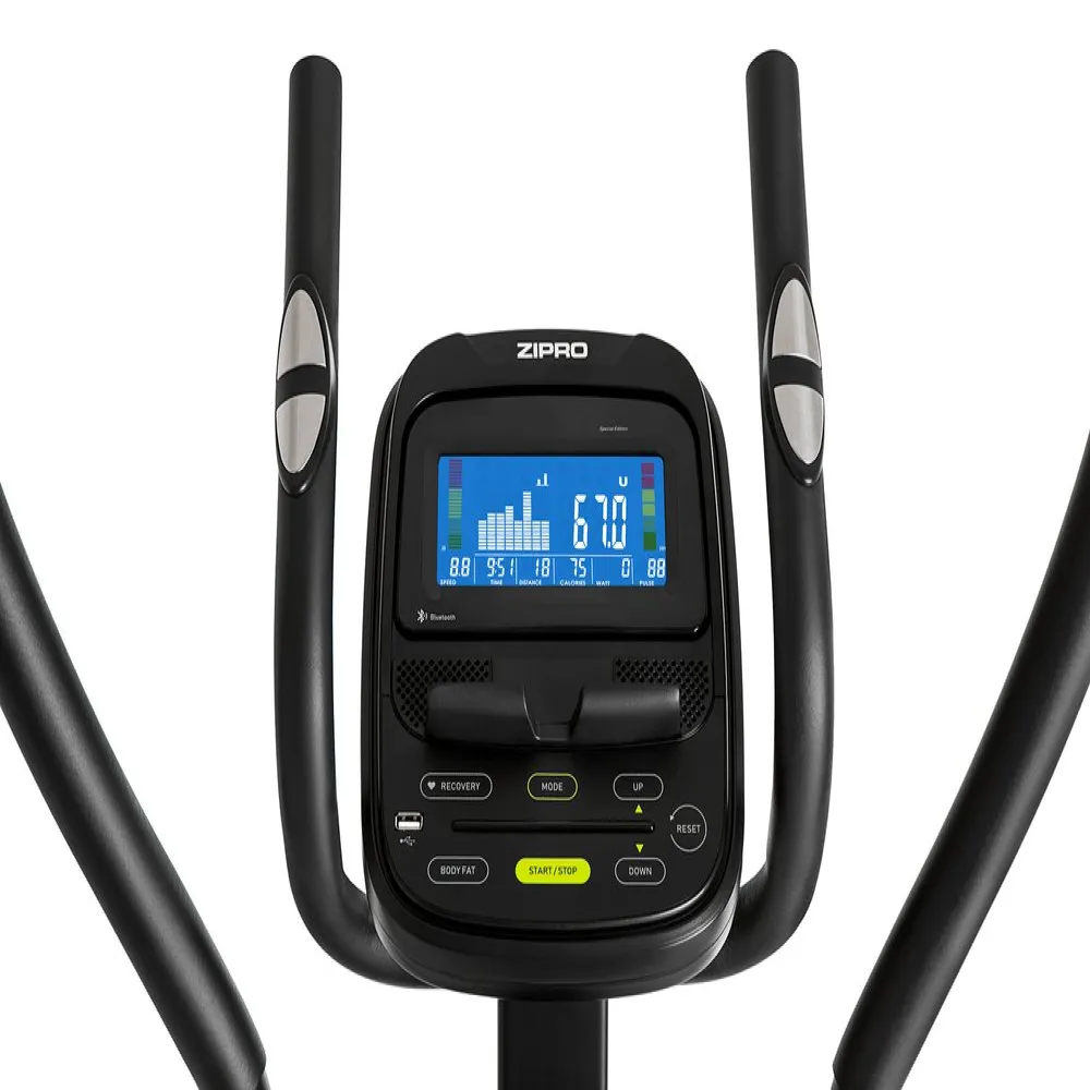 ZIPRO´s iCONSOLE+ HEAT electric-magnetic orbiter is created to perform an all-around workout by monitoring parameters such as heart rate and cadence. The built-in computer allows you to connect to the iConsole and Kinomap apps. You can use various workout programs and compete online with people from all over the world. The elliptical bike is available in two color options: black combined with gray and green, or pastel pink and mint.