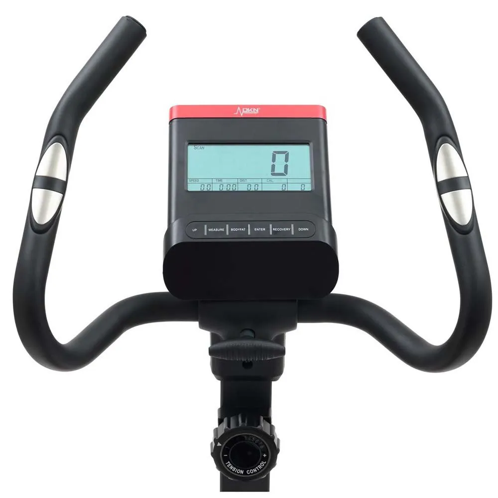 – The bike comes standard with hand contact sensors for pulse reading.